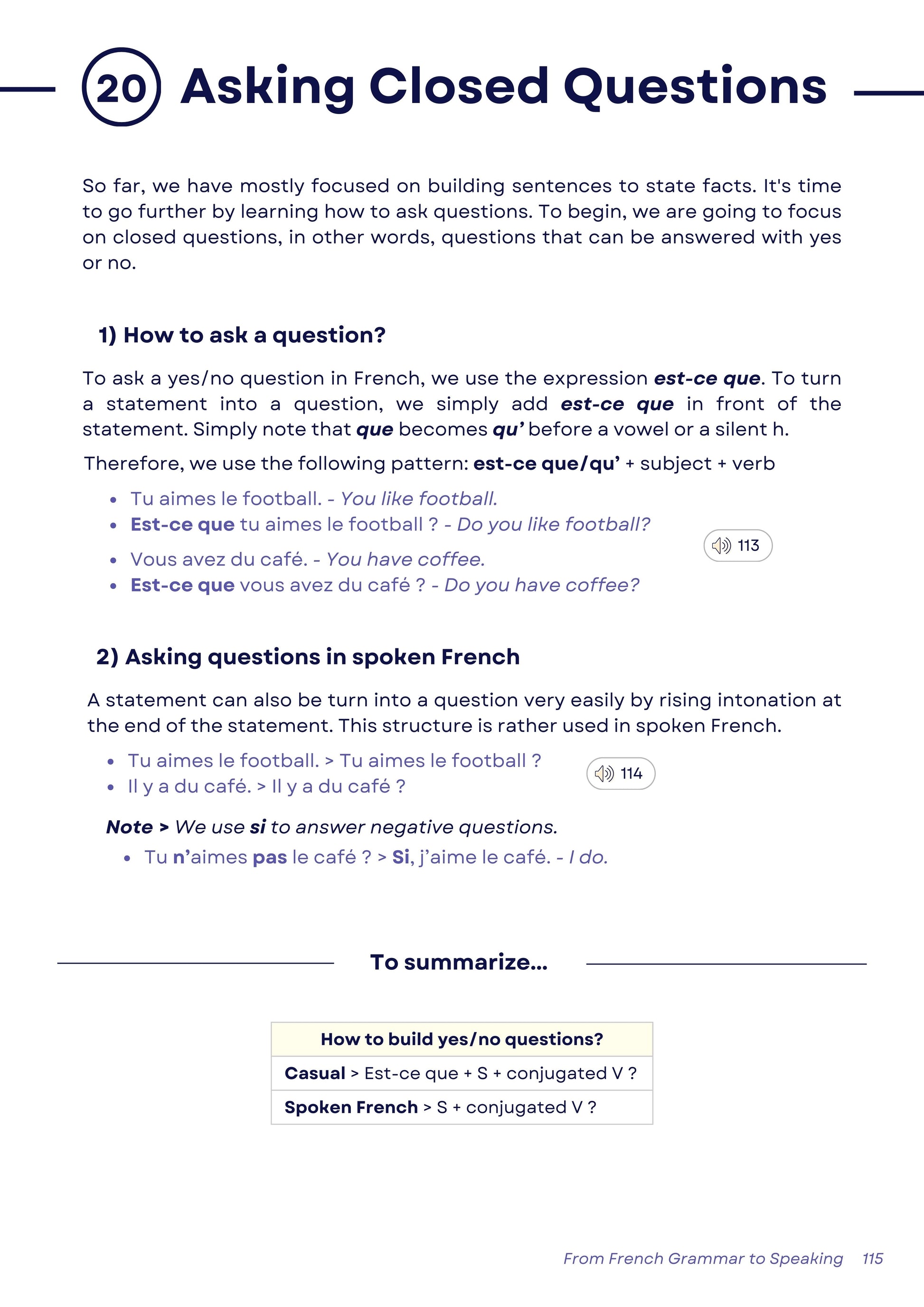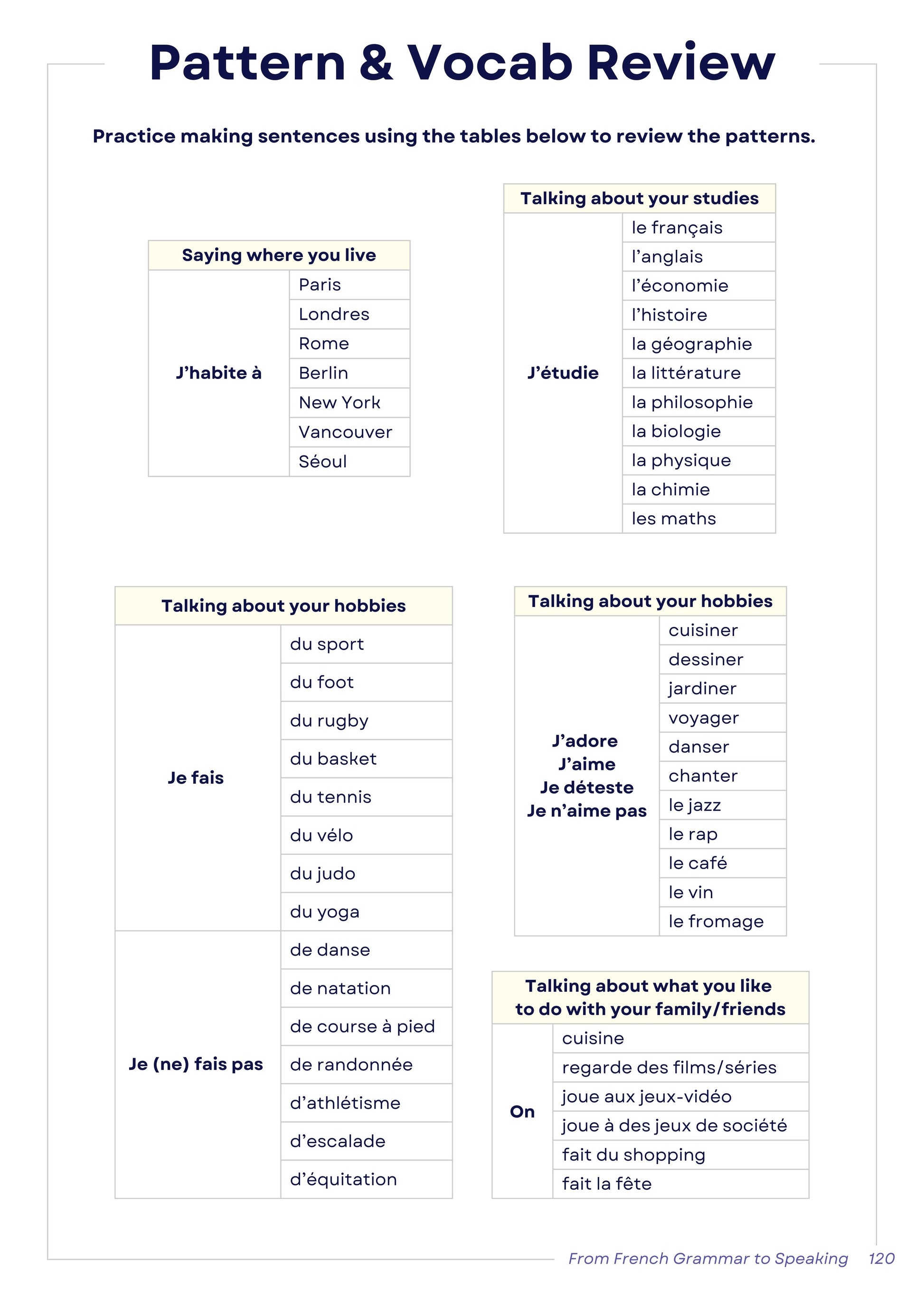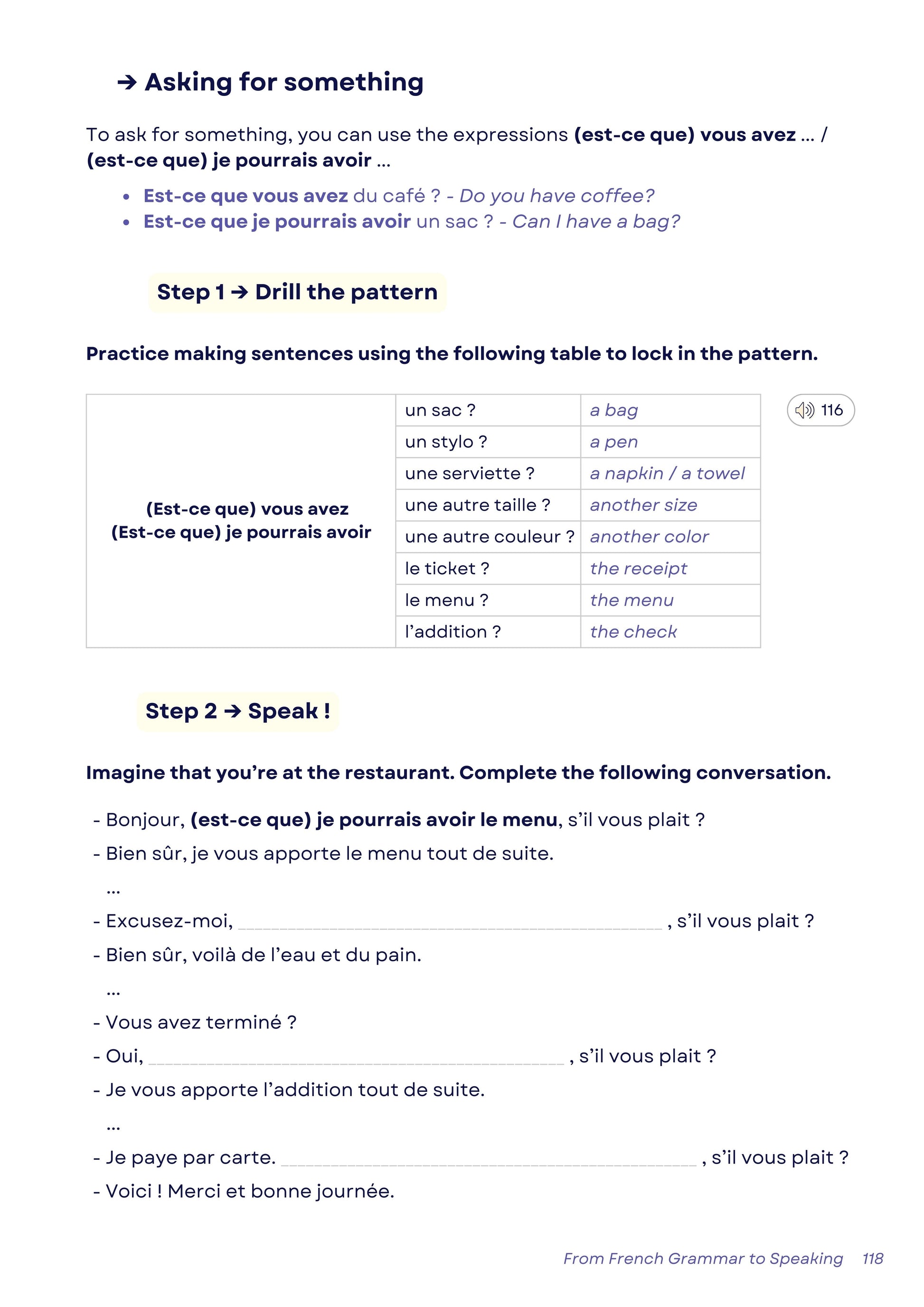 ✔️ Regular review sections to build automatic recall and bring everything together through realistic conversation practice